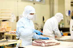 プロセスセンター(主に牛肉の販売)では、お客様のより細やかなニーズにお応えするため、スライスをはじめとした加工処理を行っています。