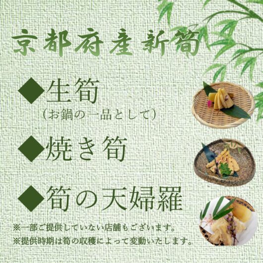 モリタ屋 京都3店舗・大阪1店舗・東京2店舗では京都府産新筍のご提供を予定しております。