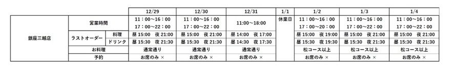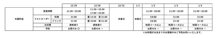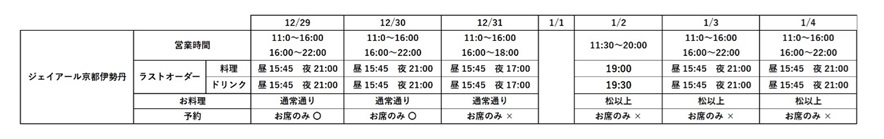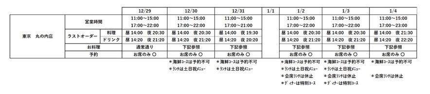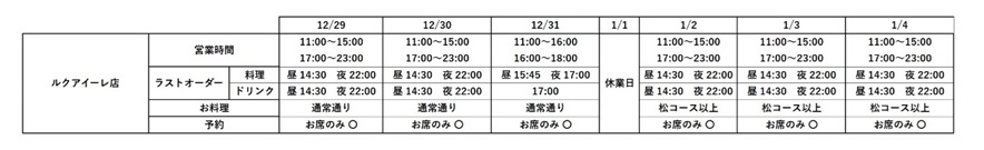 レストラン 年末年始 営業時間